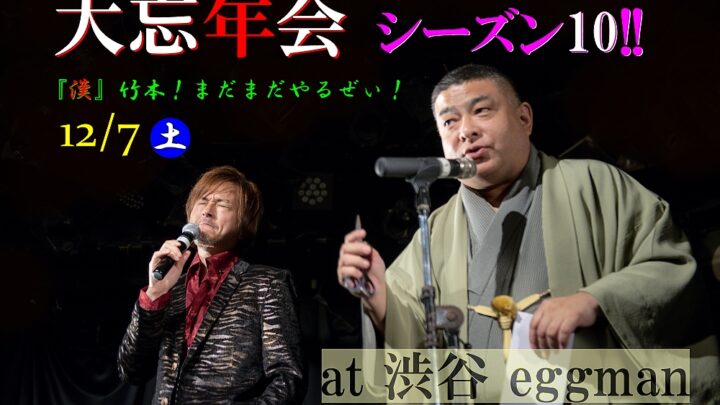 2019大忘年会シーズン10!! 【日時】 2019年12月7日(土)11:30~開場 12:00~開演 【場所】 Shibuya eggman 東京都渋谷区神南1-6-8B1 03-3496-1561 http:/…