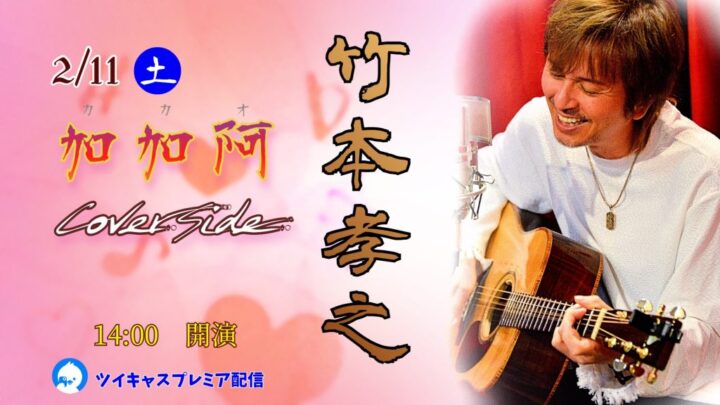 配信竹本孝之配信スペシャルライブ 『加加阿(カカオ)』~Cover Side~ 時を超えて歌い継がれた至極のバラードの数々を竹本孝之が全曲カヴァーでお届け致します。 竹本孝之 (AG:Vo) 【日時】2023年2月1…