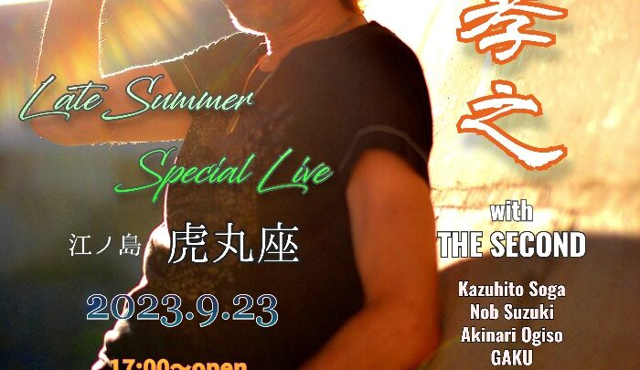 竹本孝之 Late Summer Special Live in 江ノ島 【日時】 2023年9月23日(土)17:00開場 17:30スタート 湘南の海に沈むサンセットと共に竹本孝之with THE SECONDのサウ…