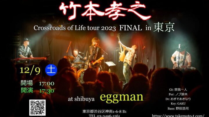 竹本孝之 Live Crossroads of Life tour 2023 FINAL in 東京 【日時】 2023年12月9日(土) 17:00 開場 17:30 開演 【場所】 shibuya eggm…