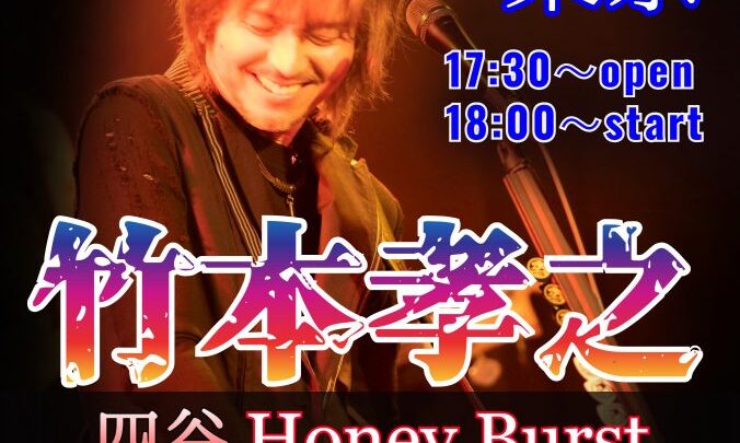 竹本孝之 Live Crossroads of Life tour 2024 in 東京 【日時】 2024年1月21日(日)17:30開場 18:00開演 【場所】 四谷 Honey Burst 東京都新宿区市谷…