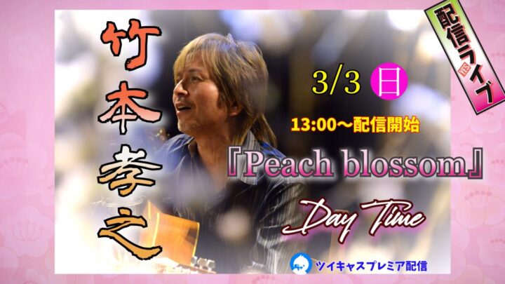 竹本孝之配信スペシャルライブ 『Peach blossom Day Time』 【日時】 2024年3月3日(日) 13:00開演 【配信メディア】 TwitCasting(ツイキャス プレミア配信) アカウント…