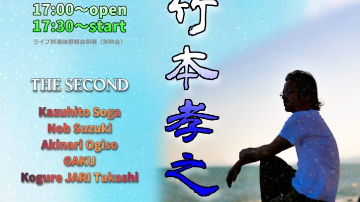 竹本孝之 Late Summer Special Live in 江の島 【日時】 2024年9月21日(土)17:00開場 17:30スタート 湘南の海に沈むサンセットと共に竹本孝之with THE SECON…